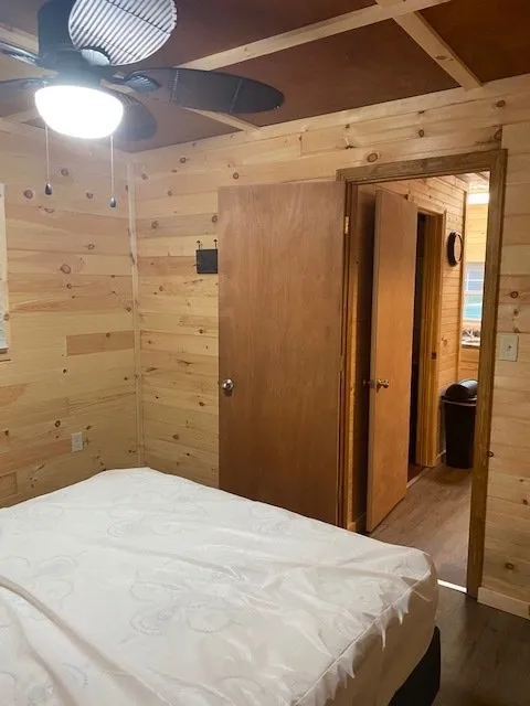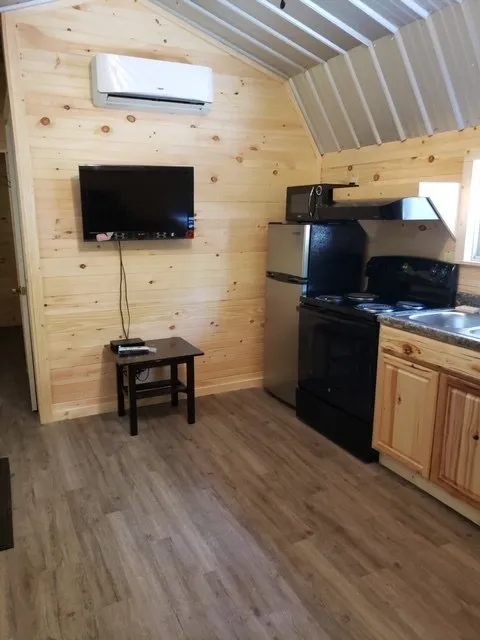 Cabin 1 is a cozy 1 bedroom cabin next to Pinnacle Creek. There is a very large 28 x 8 covered deck off the back if the cabin. Queen size bed, and a queen size couch in the living room and a twin loft bed. Tankless hot water and full kitchen. There is a charcoal grill and fire pit. Parking for 2 trucks and trailers. Cabins are pet friendly. Linens are provided.